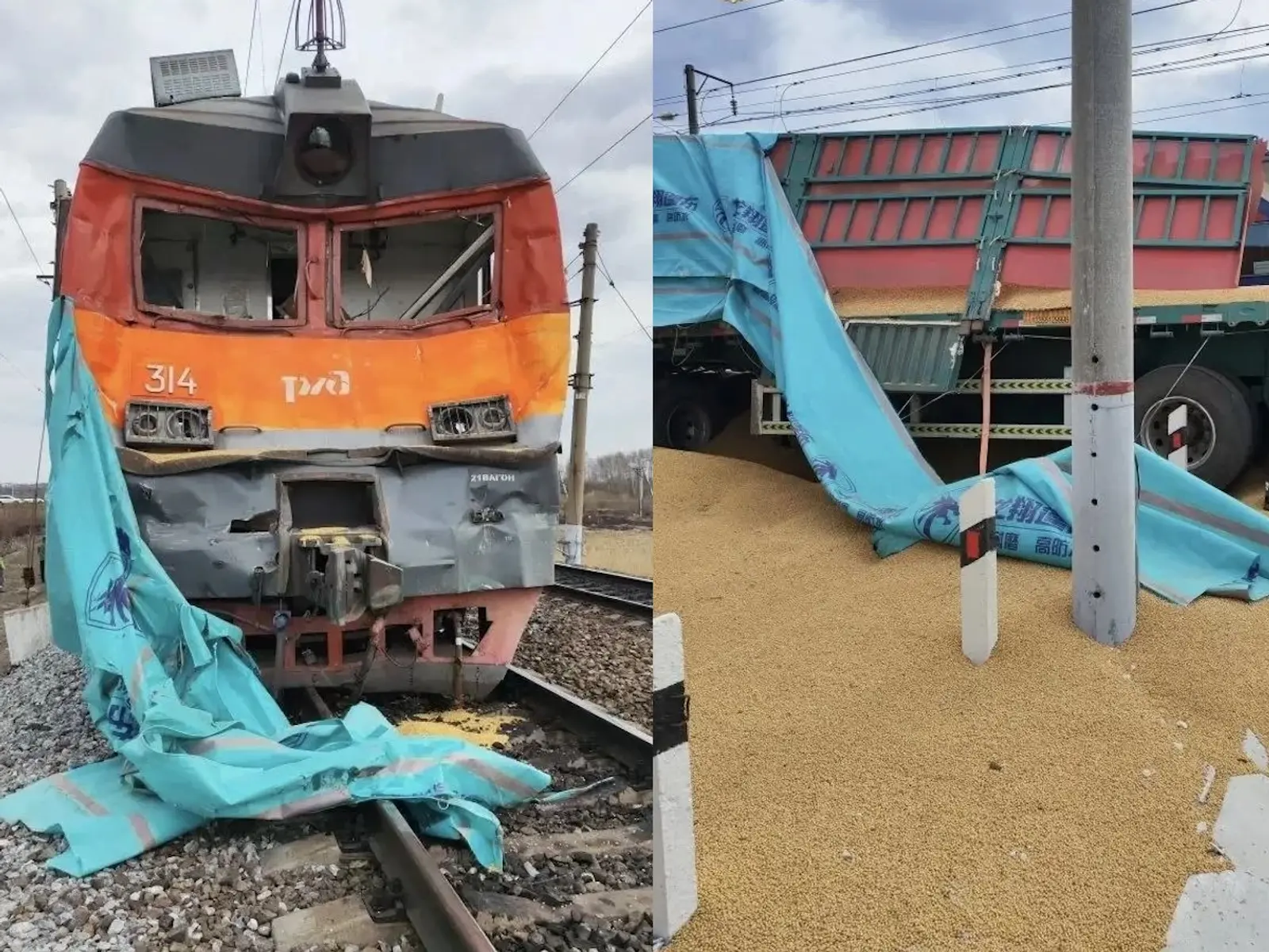 На станции Архара Амурской области поезд Владивосток-Москва столкнулся с грузовиком.