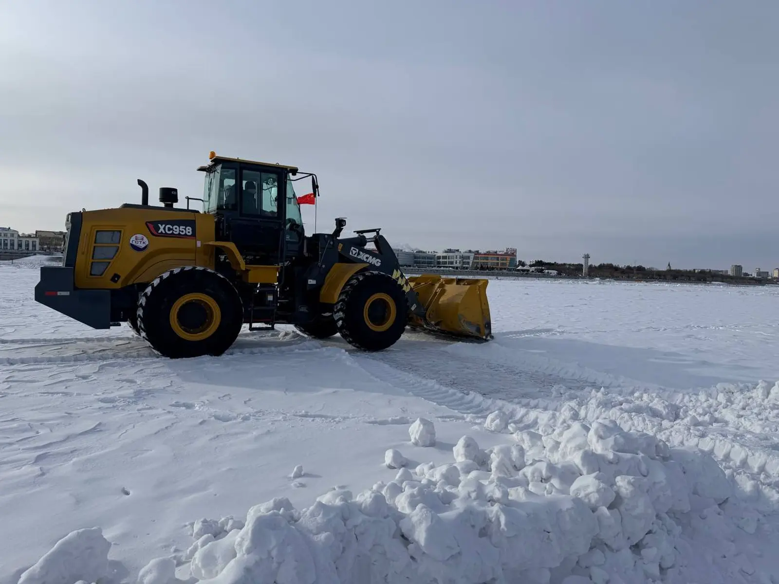 На реке Амур началась подготовка арены международного фестиваля зимних видов спорта #ЗимФестАмур, который пройдет на границе с Китаем. Дорожники очищают лёд от снега, подъезды, парковки и амфитеатр.